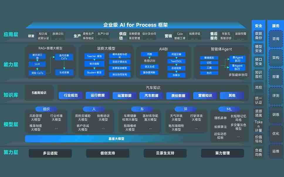 端到端的一站式AI工作空间深度融合了从企业战略规划到日常经营的全流程业务板块,,,定向解决车企内部领域多、、部门多、、链条长、、、场景碎片化等难题,,,,支持车企快速构建以AI为核心的生产力写作体系,,实现任务执行与AI能力的无缝集成与交互